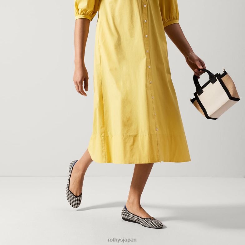 すべてを叶えるワードローブの定番アイテム。無限の汎用性、洗濯可能、快適な白と黒のギンガムチェックのクラシックなバレエフラットは、長いシーズン着用できるように作られています。