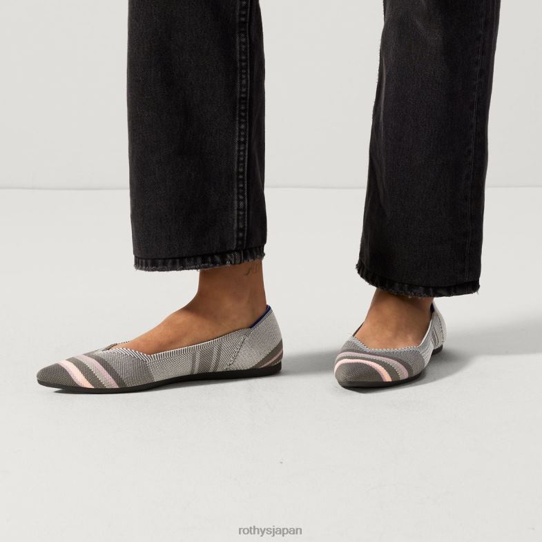 Rothy's ポイント 女性 グレーの逆ストライプ 2XLLJ16 靴