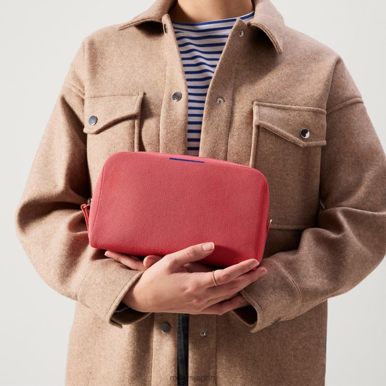 オレンジのアクセントが付いたコーラルの機能的な定番アイテムであるどこにでも持ち運べるポーチは、ハイテクアクセサリーから緊急時のスナックの隠し場所まで、ありとあらゆるものをエレガントに収納できます。